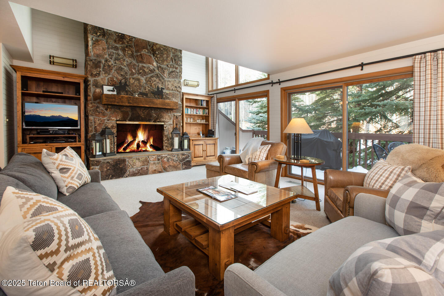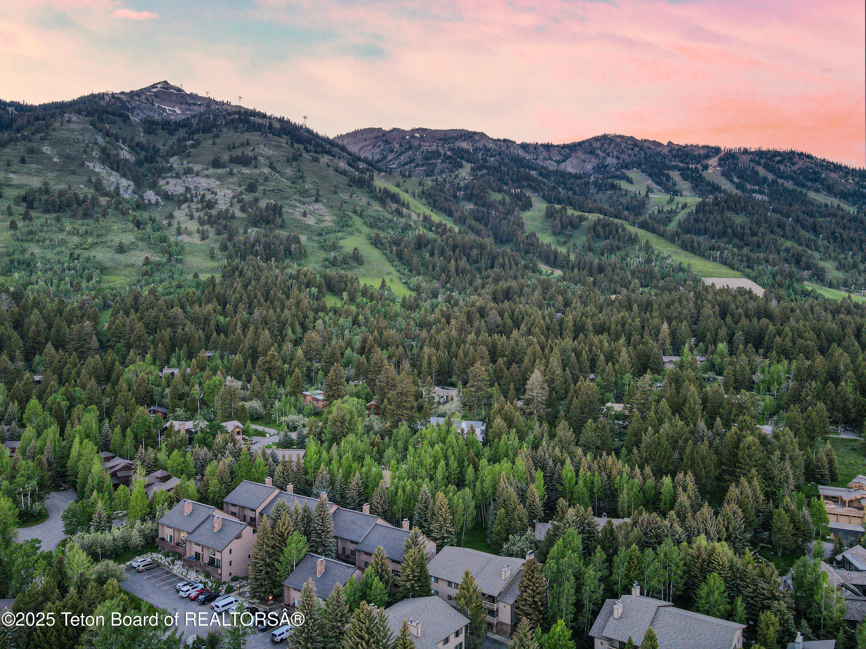 Don't miss this stunning turn-key property tucked into one of the most convenient locations in Teton Village. A ski easement allows you to ski to the door and Wind River is steps away from the Moose Creek chairlift, making it easy to ski in and get out to the slopes from this well-designed town home. There is ample space for large groups or families with 3 levels, 4 bedrooms, 4 full baths and a main level dedicated to gathering with living room kitchen and dining room. This spacious townhome is filled with large windows and glass doors, inviting the impressive mountain views and natural light in. Relax in front of the massive fireplace, or enjoy the full dining and kitchen area as you recount the day's adventures. Kick back on one of the two balconies and enjoy the fresh air. This home is being offered furnished and with a strong rental history in a wonderful location within walking distance to fine dining and entertainment. Enjoy two balconies, vaulted bedroom ceilings, a wood burning fireplace, ample closet space and an upgraded kitchen. This is a true turn-key home surrounded by beautiful woodland outdoor space. During summer months, hike or mountain bike from your door onto miles of trails throughout Teton Village and National Forrest. Access to Grand Teton National Park is about a mile away, and very close to some of the park's best hiking trails. Owners can be members of Sundance Tennis & Swim.