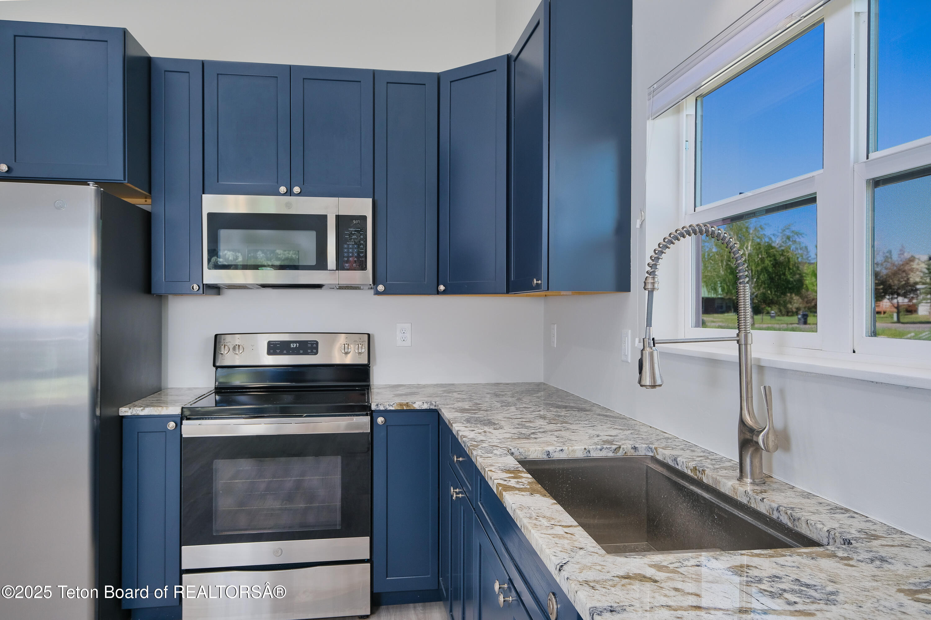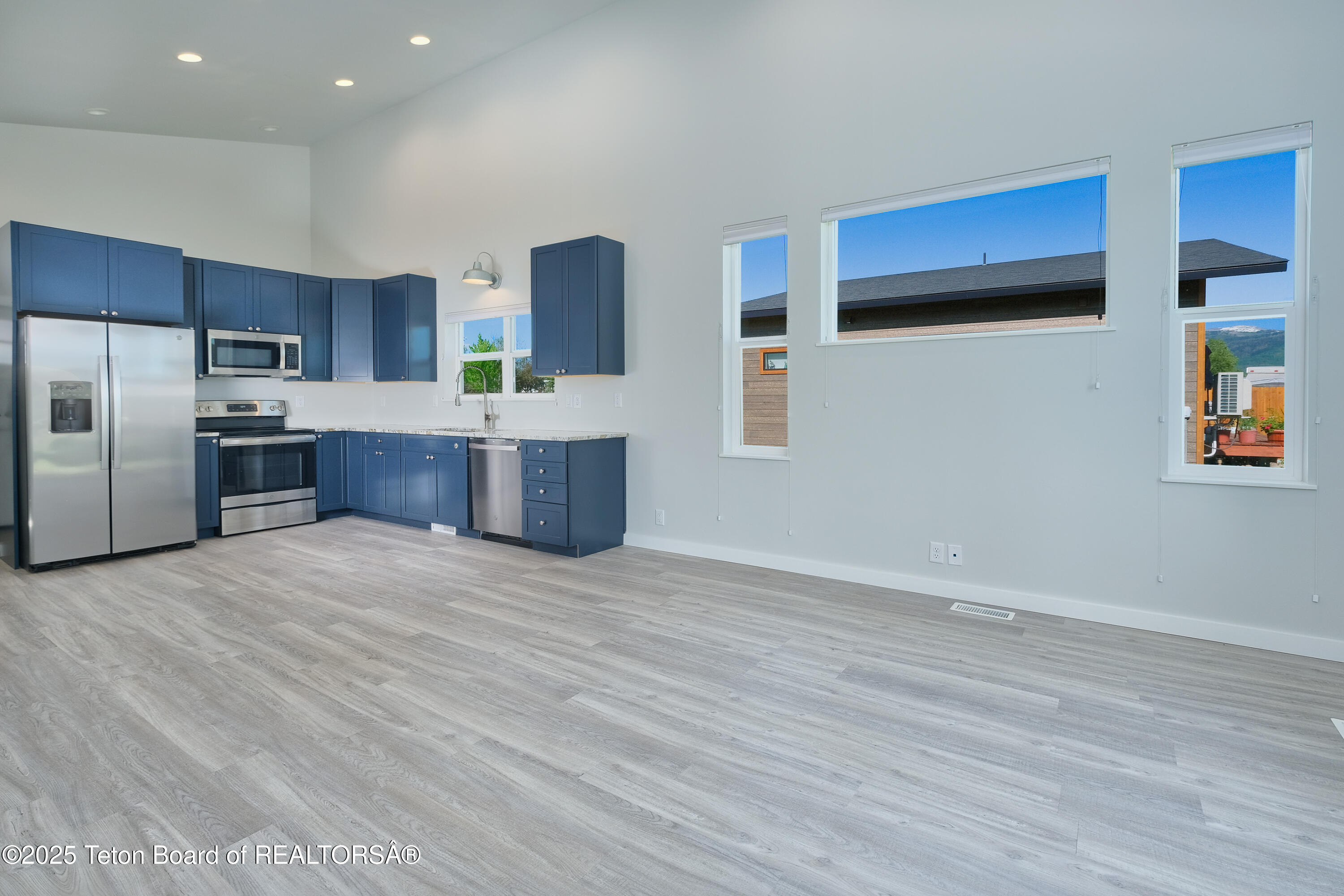 Inside, discover an open living area with soaring cathedral ceilings and a clean, modern design. The beautiful kitchen boasts granite countertops, while the home features durable finishes throughout. Enjoy year-round comfort with energy-efficient, all-electric heating and AC.