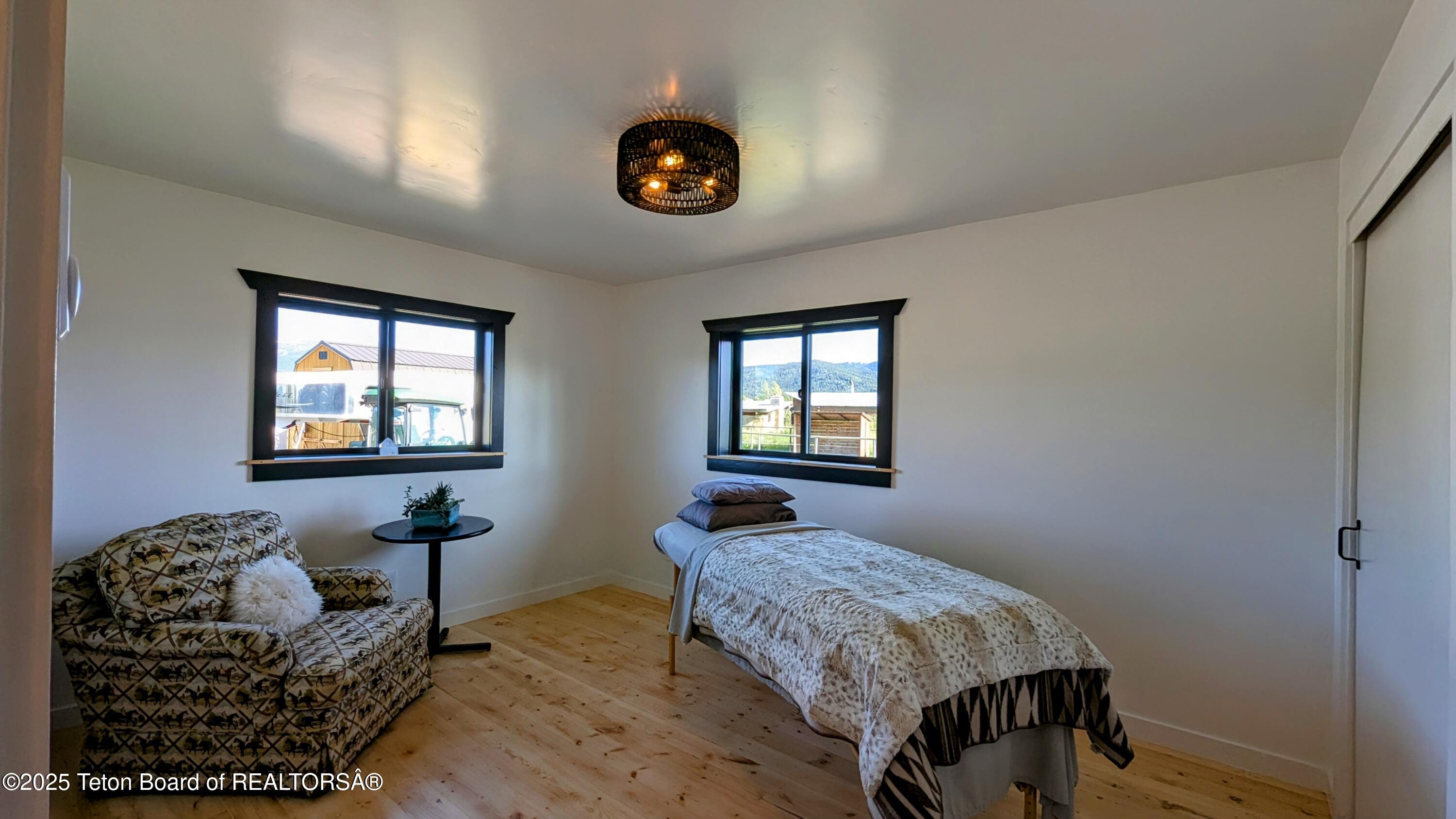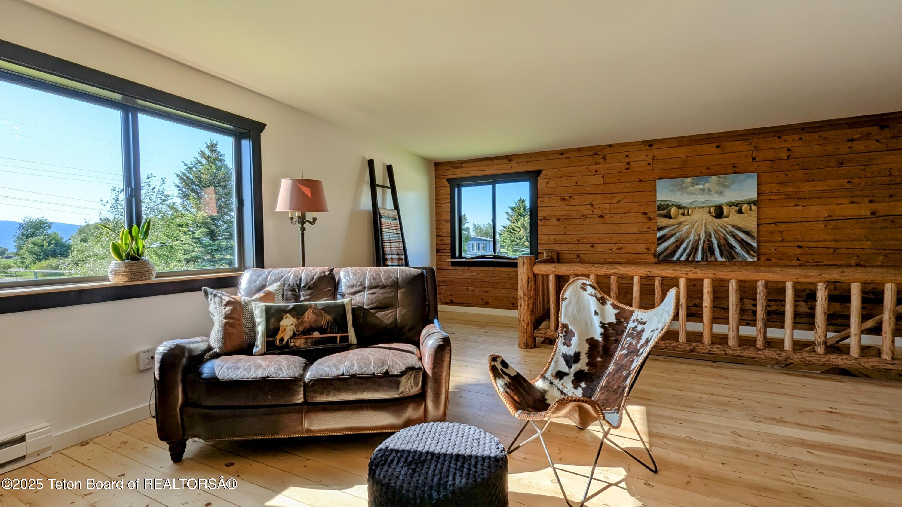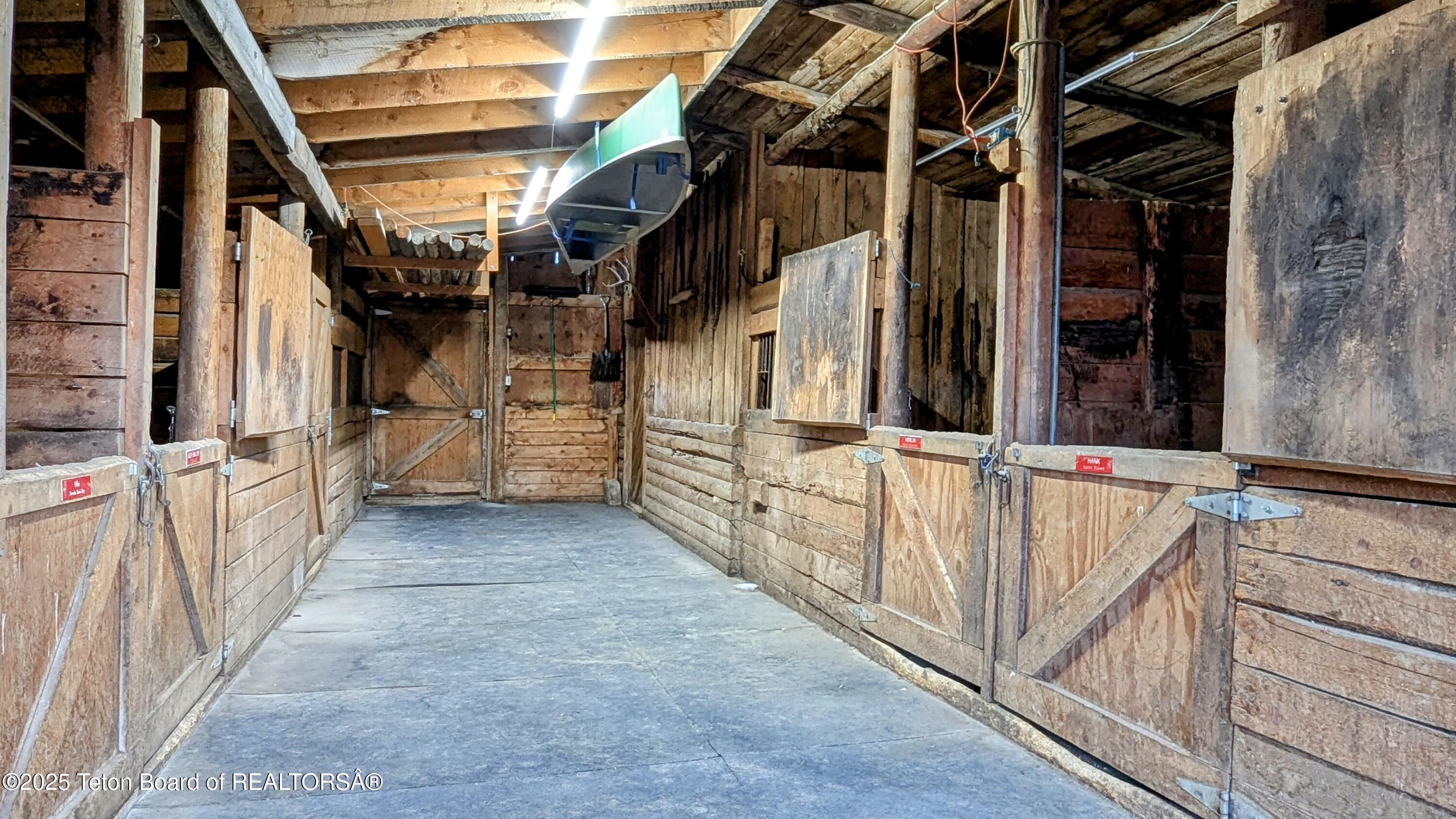 The property is complemented by a classic wood barn measuring 40 x 46, featuring five matted stalls, an enclosed tack room, and an oversized stall. The barn's thoughtful design is currently used for horses but can easily be converted and used as a garage or shop to house all your toys.
